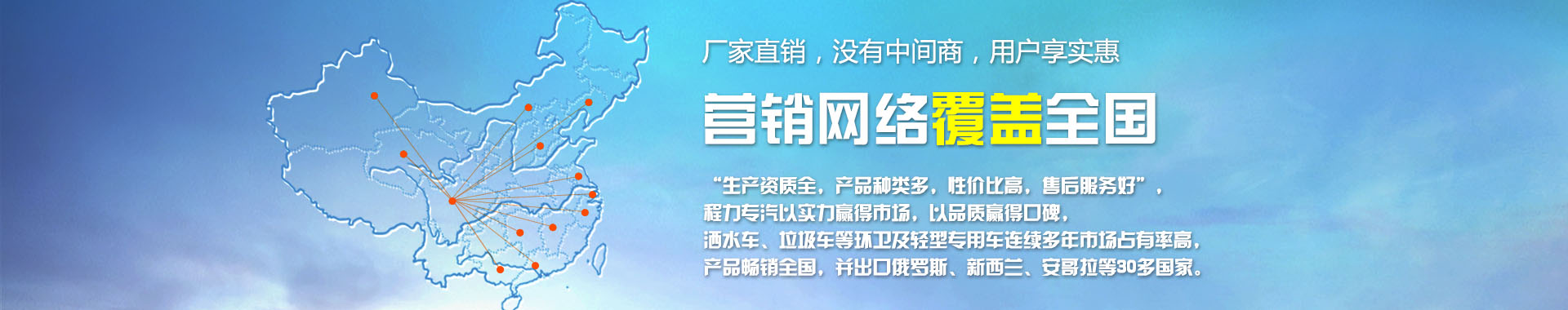 我公司致力于開發(fā)生產(chǎn)銷售專用汽車為已任,為您量身打造方便實用,耐用的專用汽車,其主導品種有園林綠化灑水車、環(huán)衛(wèi)灑水車、油罐加運油車、吸糞車、吸污車、擺臂、掛桶、密封式垃圾車、廂式運輸車、消防車、半掛車、自卸車、水泥車、隨車吊等八大系列100多個品種300多個車型。同時批發(fā)東風、解放、福田等各種二類底盤。目前我公司銷售網(wǎng)絡(luò)基本已覆蓋全國各地,具體如下。